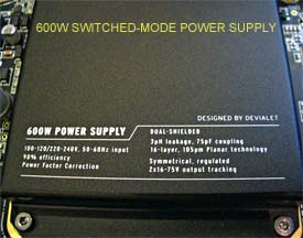 では、ちょっと小さいですが、先ずは内部の写真をご覧下さい。この中に同社の申請したパテントが五つも搭載されているということでした。 この小さなボディーにフォノイコライザー、D/Aコンバーター、プリアンプとパワーアンプという四つの機能が凝縮されているのですから驚きです!! D-Premierのサイズは400x400x44.5mm、重量は何と6.9 kgという信じがたいほどに軽量かつコンパクトでありながら、 実行出力は全高調波歪:THD+N=0.001 %、総合S/N比130dB、更に出力インピーダンス 0,001オームという超高レベルのスペックを維持しつつ 何と2オームから8オームまで負荷において240W/chというパワーを叩き出します!! この強力なパワーの源は何か? という事ですが、上記内部写真の左上にあるブラックボックスを拡大した写真が次のものです。