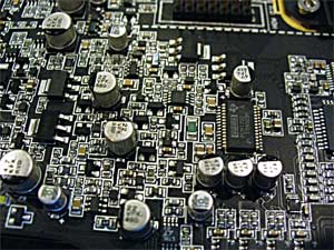 それを拡大したのがこの写真ですが、日本ではBBと略してバーブラウンという名称の方が通りがいいかも入れません。でも、実質的にはテキサス・インストゥルメンツの経営傘下にあるために同社ではT.Iと表記しているもの。 ここでアナログ変換され、クラスAで伝送されていく方向が写真で右から左方向へというシグナルパスを形成しています。