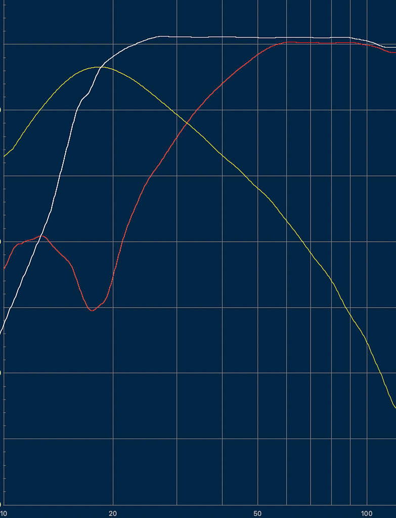 (白)は上記の(赤)と(黄)を合わせた場合の一定距離でのレスポンス